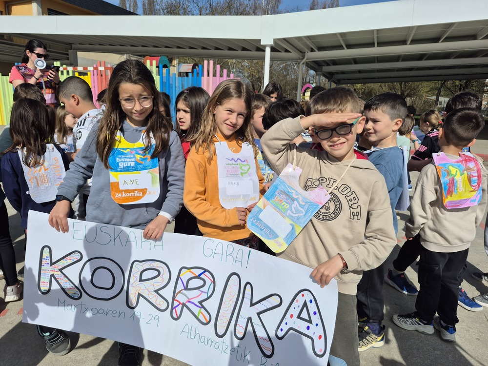 Ayer celebramos la Korrika Txikia con el alumnado del modelo A de 2º a 6º de